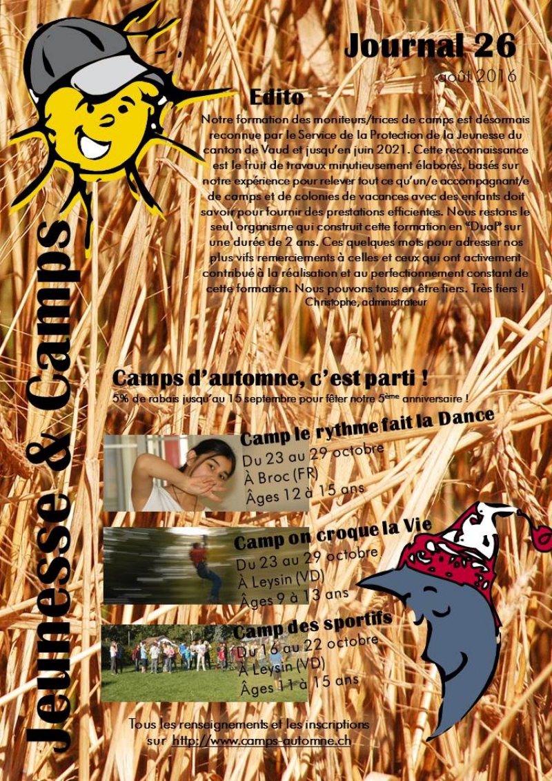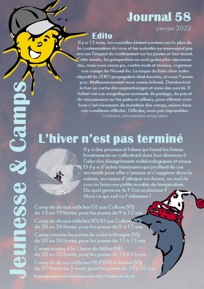 1er journal de Jeunesse et Camps: convocation à l'Assemblée Générale, le camp de ski et de snowboard à Saas Grund et l'annonce des camps d'été